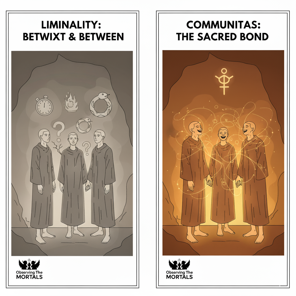 - “Communitas”: The Deep Bond of the Threshold: This is Turner’s most famous and powerful concept. He argued that within the structureless, chaotic void of liminality, a unique and intense social bond emerges: communitas. It is a feeling of direct, immediate, and egalitarian comradeship among the group of initiates. All the usual markers of social structure—hierarchy, status, wealth, and property—are temporarily dissolved. What remains is a profound sense of shared humanity. Communitas is the opposite of “society” (which is structured and hierarchical); it is an experience of “anti-structure.”