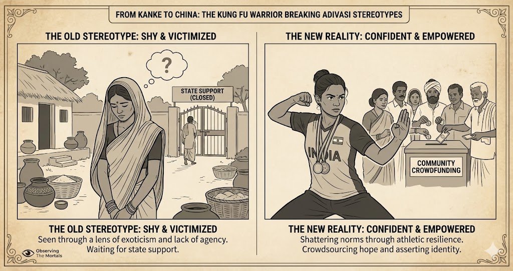 - On Tribal Women: “Tribal women are increasingly breaking traditional stereotypes. Purnima Linda, an Oraon athlete from Jharkhand who crowdsourced her way to winning medals at the World Kungfu Championships, exemplifies this agency, using sports to counter the ‘shy Adivasi woman’ narrative.”